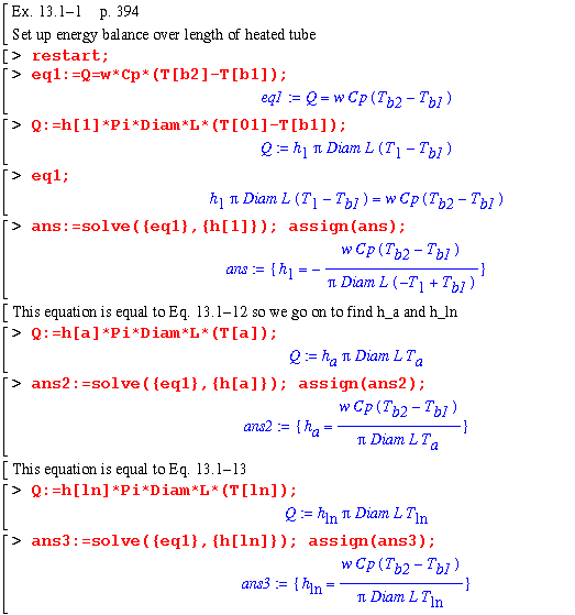 By setting up an energy balance and equating wuth equations 13.1-(2-4), h1, ha, and hln can be solved for symbolically.